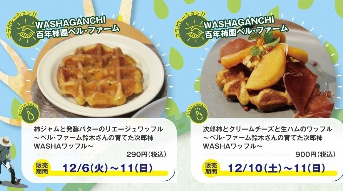この次郎柿とすっきりとした甘さのてんさい糖でトロトロのジャムを作り、発酵バターの風味豊かな生地にたっぷり入れてしっとりしたワッフルに。