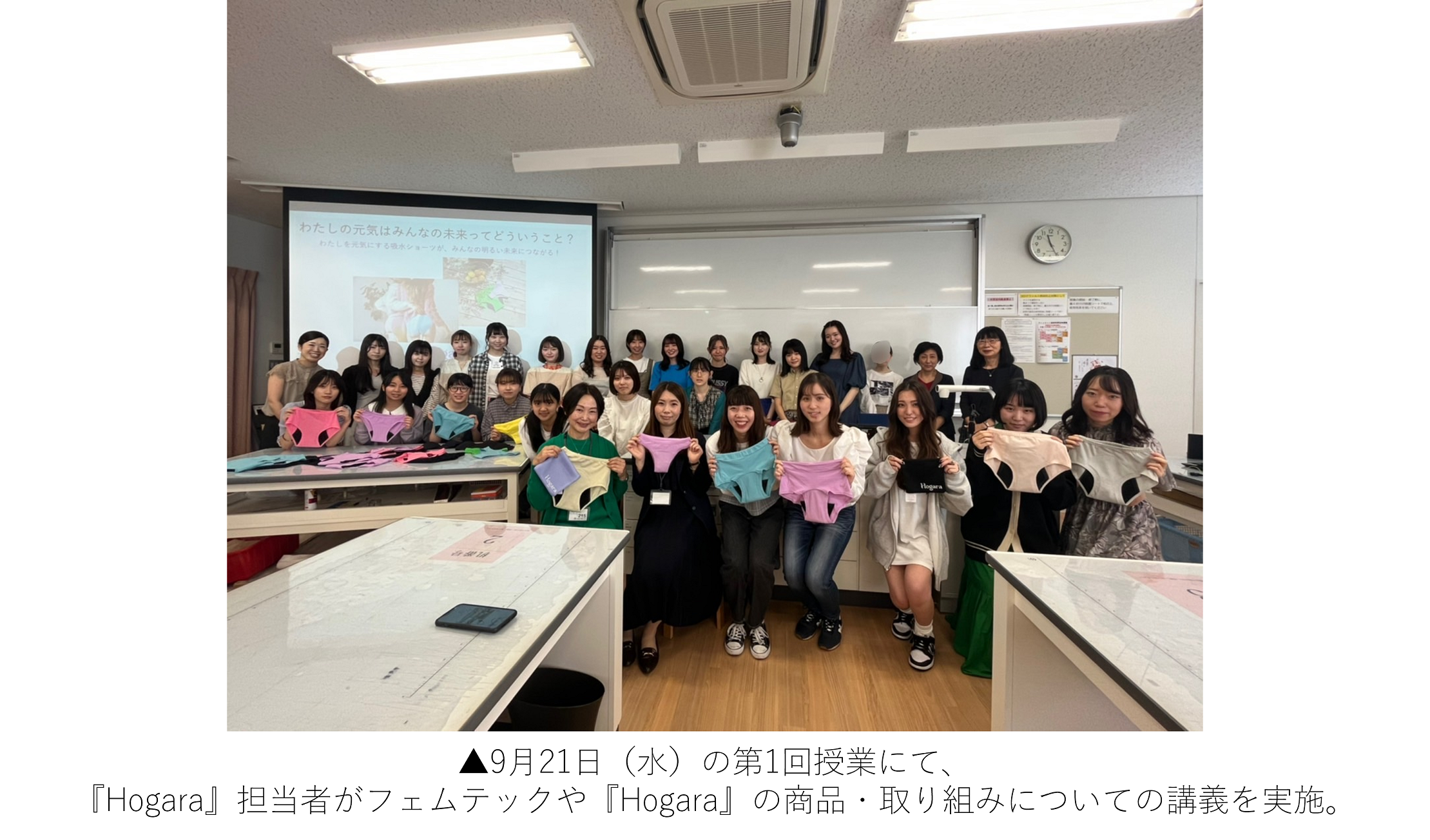 本プロジェクトでは、金城学院大学の授業に『Hogara』が参画し、女性を取り巻く環境やフェムテックについての講義・意識調査の実施、さらには学生たちの“私たちが今ほしいもの”を反映したオリジナル商品の製作を目指します。