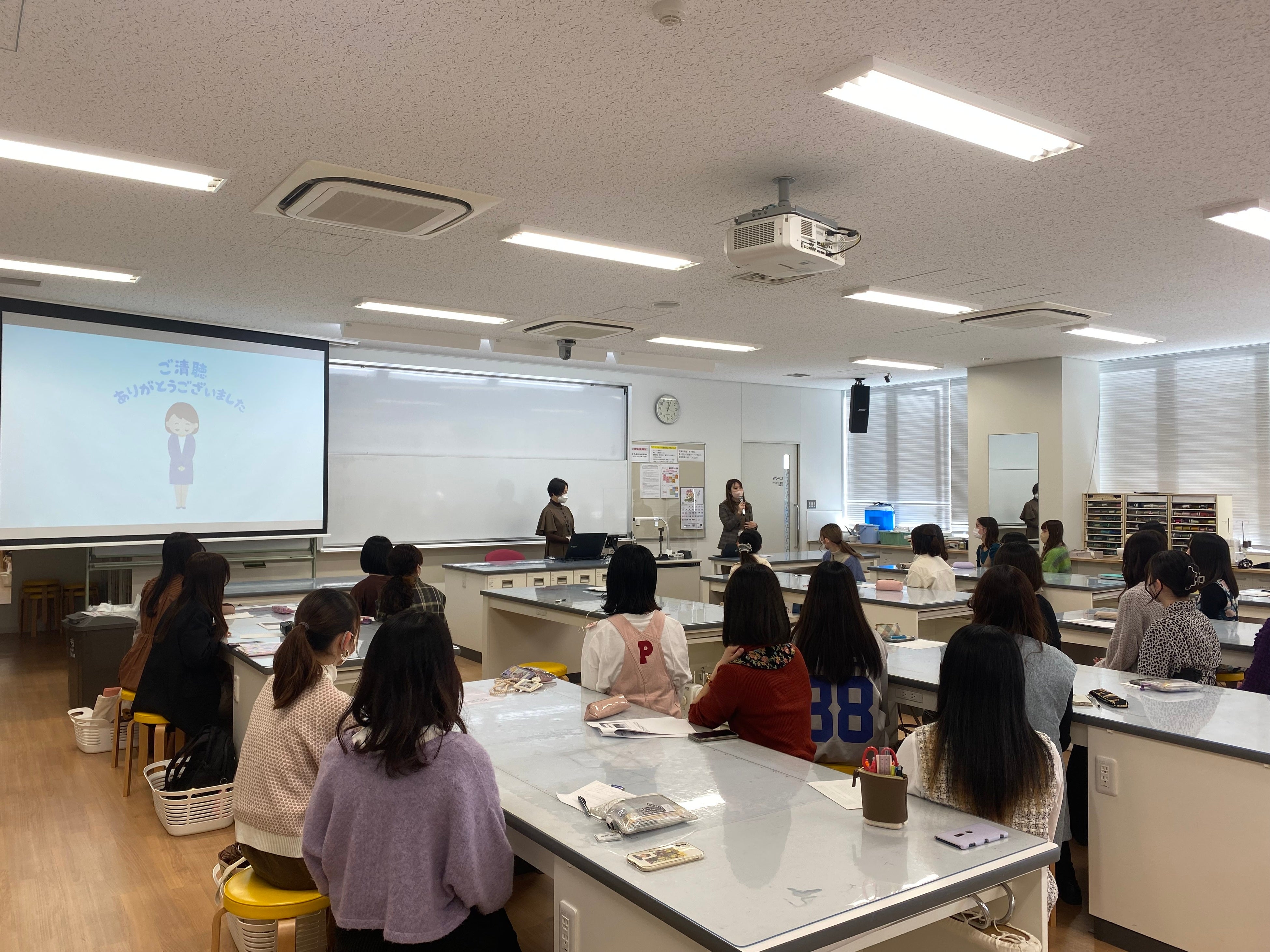 SNS等で学生は日頃から多くの情報に触れているとはいえ、フェムケアについての情報を収集したり、友達同士で話し合ったりする機会は少なかったようです。今回、授業で取り組ませていただくことによって、自分たちの身の回りのことでより良くできることがあるのだという気づきになっているようです。またこれまで学んだことを社会にどう生かせるのかを体感する機会にもなっています。