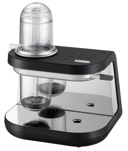 瞬時にコーヒー粉を蒸らすスチームを発生させ、一般的なドリップ式ではない浸漬式を採用。シリンダーの上下に圧力差を発生させてコーヒーを減圧ろ過し、抽出を行う新しい方式です。クリアーでかつ、豆本来の香りや旨みを引き出します。