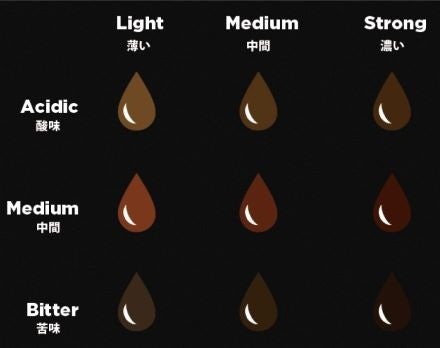 ③同じ豆で9通りの味が楽しめる風味3段階×濃さ3段階 調整メニュー