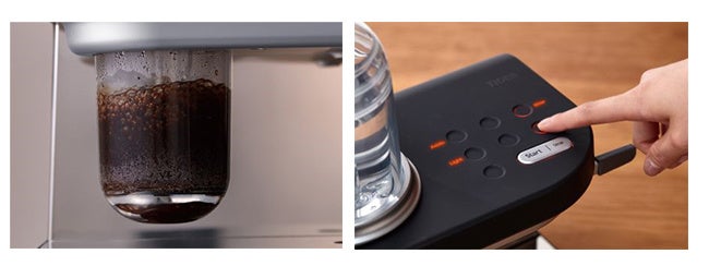 風味と濃さの選択キーを押すだけで「Siphonysta」が抽出過程の温度や時間、かくはん方法を自動調整。