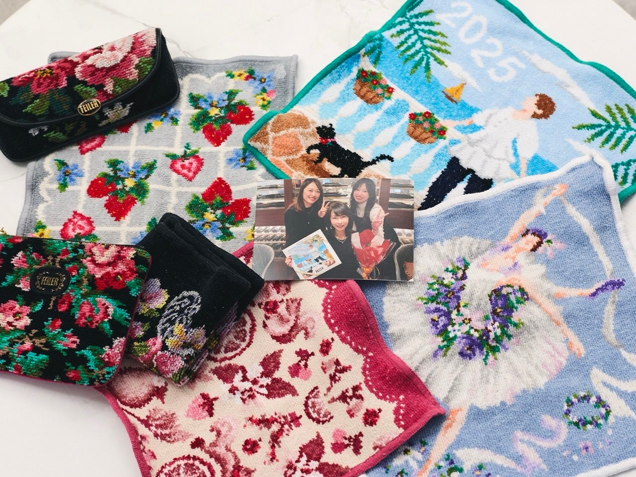 お母様のお誕生日にはご家族で集まり、ホテルなどお祝いされているとのこと。プレゼントはどういう風に選ばれているのかをお聞きすると、「私は毎年、フェイラーのハンカチを贈っていて、年号の入ったもの(アニュアルバージョン)や、母が好きなイチゴのデザインなどを選んでいます」とユズさん。お母様は「イチゴがいいと自分からリクエストしています(笑)。あと3人ともずっとバレエをやっていまして、今も私だけ続けていますので、2021年のバレリーナのハンカチはすごくうれしかったです。フェイラーのハンカチをプレゼントしてもらうと、自分のためにこれを選んでくれたという想いまで伝わってくるのが素敵だなと思います」。