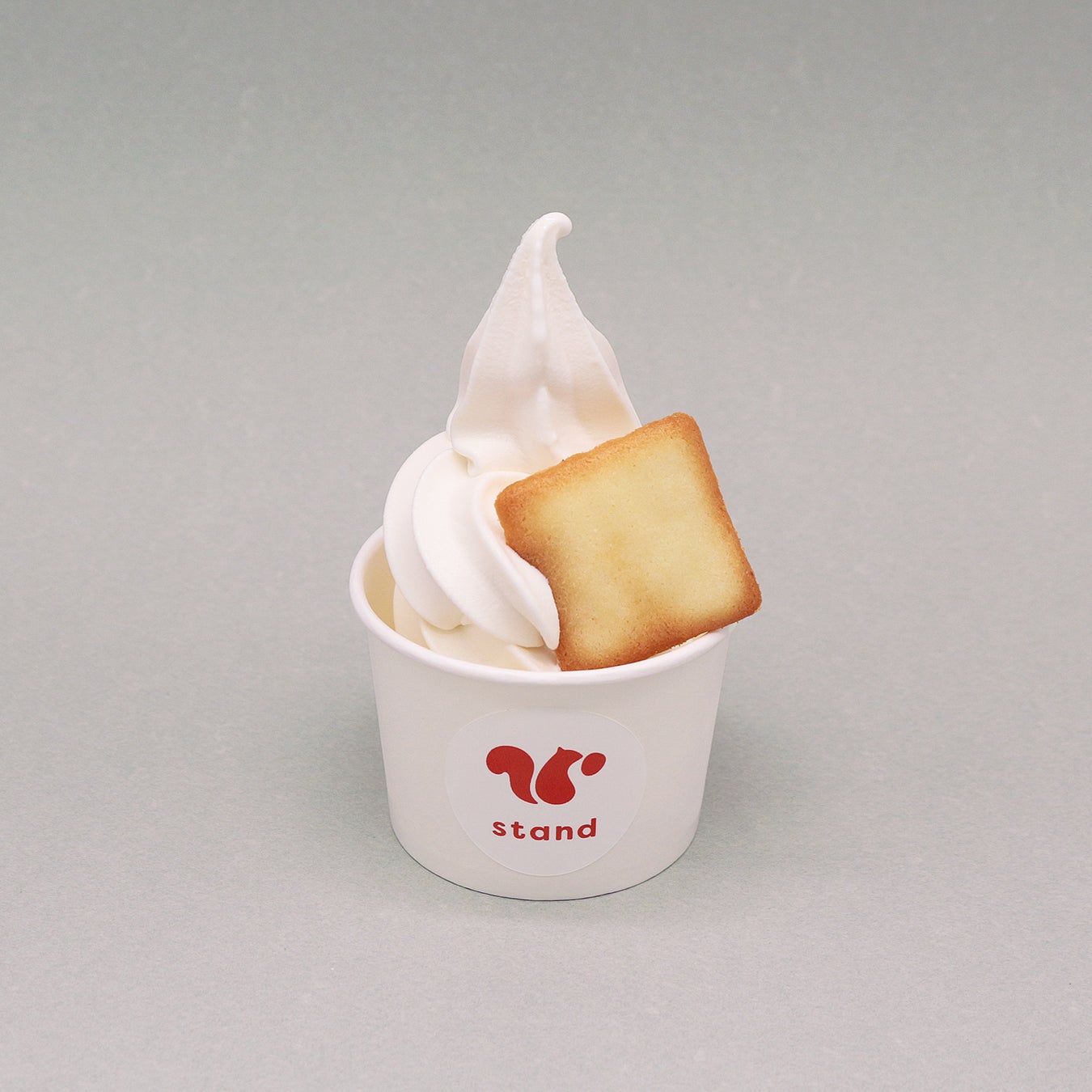 十勝ジャージー乳を使用して作ったここでしか食べられないスナックミーのオリジナルの濃厚ソフトクリームです。原材料は、牛乳、生クリーム、甜菜糖の3種のみ。安定剤不使用に加えて、白砂糖を使わずに優しい甘みが特徴の甜菜糖を使用することで、十勝ジャージー乳の美味しさを最大限にお楽しみいただけます。安定剤を使用していないため、自然ななめらかさであると同時に非常に溶けやすく「賞味期限60秒の無添加ソフトクリーム※」です。溶けやすいためカップでの提供のみとなりますが、店内で焼き上げるラングドシャを添えてご提供します。