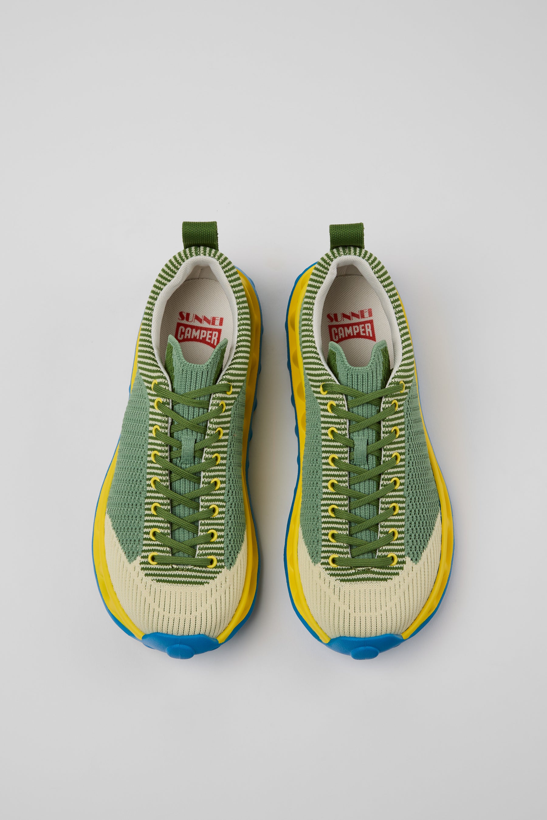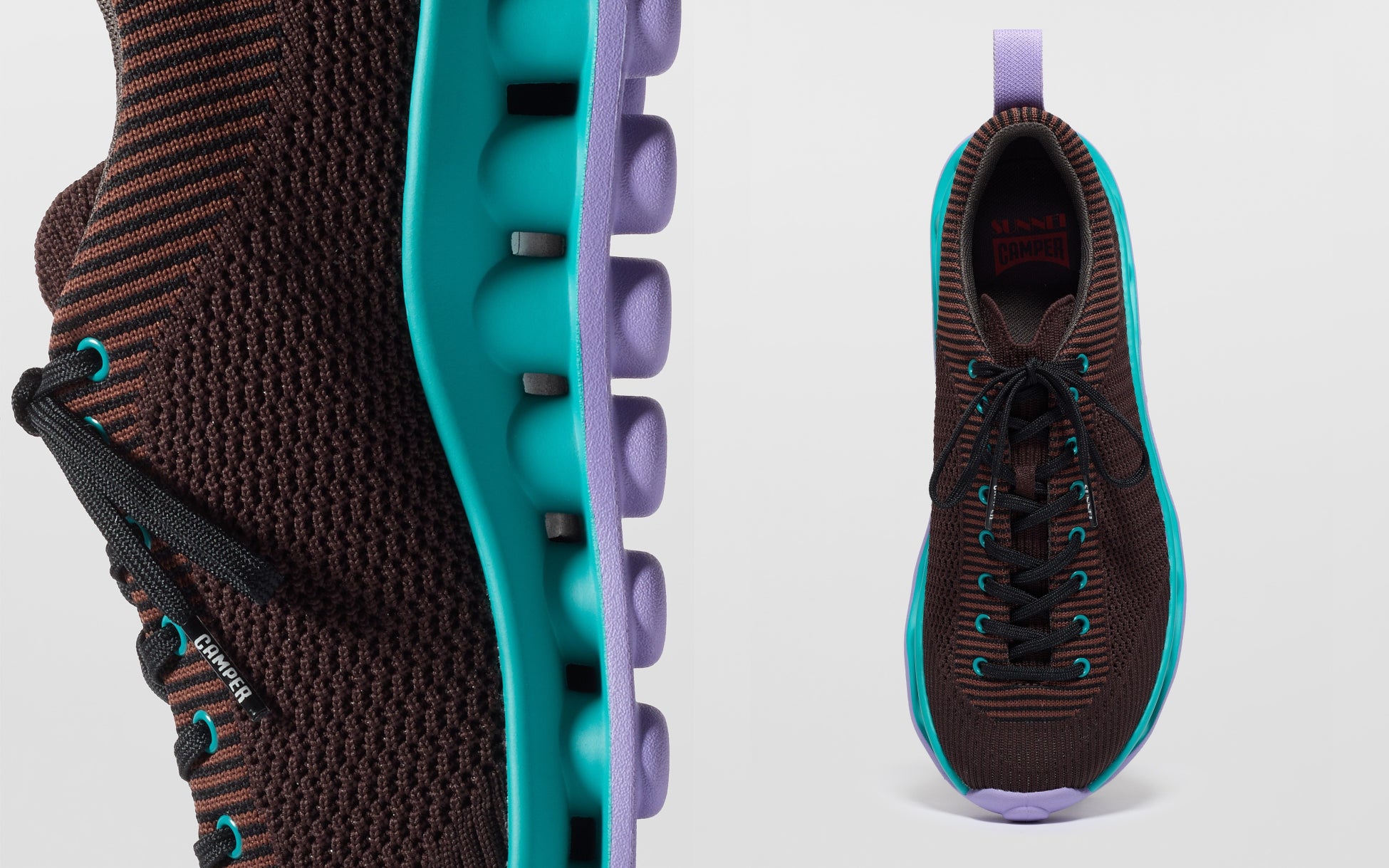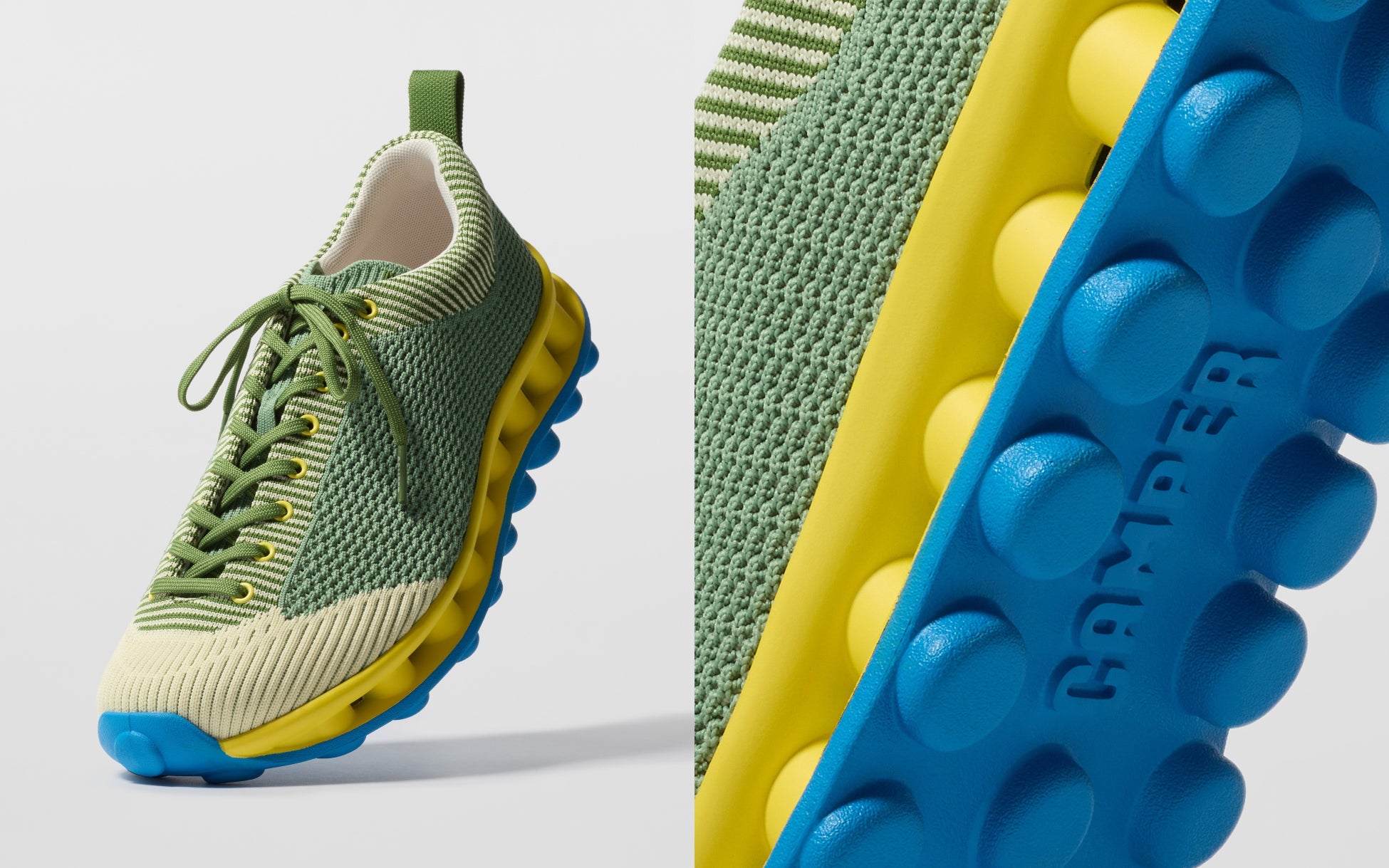 SUNNEIは、Loris Messina(ロリス・メッシーナ)とSimone Rizzo(シモーネ・リッツォ)によって2014年にミラノで設立され、カラフルな美学、レトロなアクセント、そして独創的なデザインアプローチで知られています。そんなSUNNEIと2024AWコレクションより、「Camper Together」*プロジェクトの一環としてクリエイティブコラボレーションをスタートしました。第1弾では、カンペールのアーカイブからインスパイアされた、左右どちらの足でも履ける「FORONE(フォロネ)」を発売。第2弾では、新たにアーカイブスタイルからセレクトし、全く違うアプローチで「PELOTISSIMA(ペロティッシマ)」を生み出しました。ラストの共同エディションとなる今回も、SUNNEIチームとともに、1996年に誕生したカジュアルシューズ「Pelotas Nu」に立ち返り、通気性のあるデザインと特徴的なダブルスタッズのアウトソールを基盤に、シグネチャーであるマキシマリストなスタイルを表現しました。 PELOTISSIMAは、バイカラーのダブルスタッズを備えたXL EXTRALIGHT EVAアウトソールを採用し、二重のクッション性を実現。アッパーには、通気性に優れたシンプルなニット素材(リサイクルポリエステル85%とメルティングヤーン15%)を使用。驚くほど軽量で、優れた快適性とユニークな歩行体験を提供します。