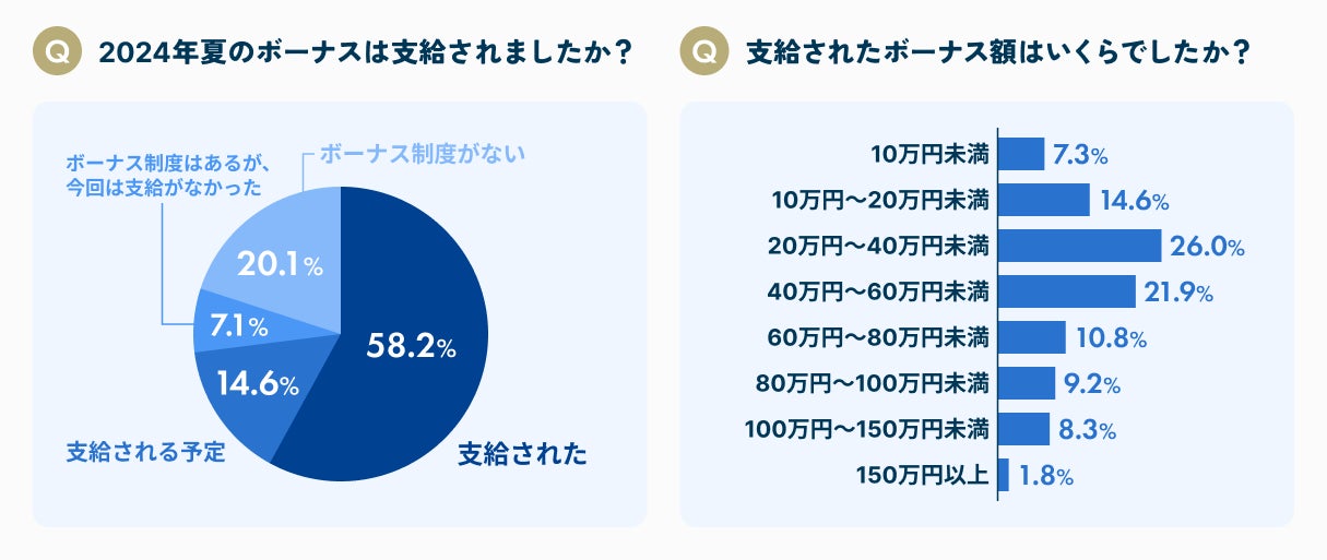一方、7.1%の方は「ボーナス制度はあるが、今回は支給がなかった」と回答しており、会社の業績や、個人の売上・成果などの事情からボーナスが支給されておらず、誰しもがボーナスを支給されるわけではないことがわかりました。