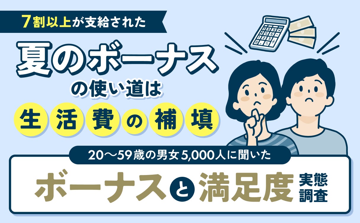 7割以上が支給された夏のボーナス 使い道は「生活費の補填」20~59歳の男女5,000人にボーナスと満足度の実態を調査