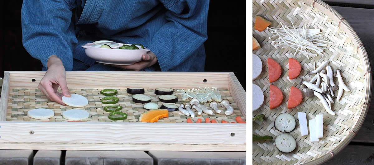 【動画】土用干し、干し野菜づくりに安心・安全な国産竹ざるレアな四ツ目編竹ざるもあり