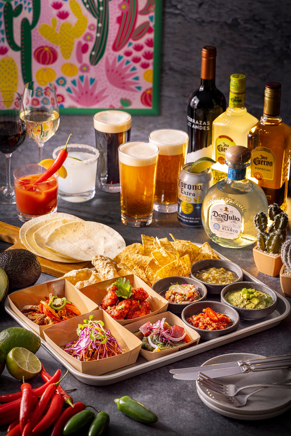 フリーフロープランのドリンクは「アサヒ スーパードライ」や「ブリュードッグ パンクIPA」など5種類の生ビールと「コロナ」などの缶ビールに加えて、「ドン・フリオ」や「クエルボ」など各種テキーラを用いてオリジナルカクテルやテキーラショットをお楽しみいただける“テキーラ・バー”も登場。さらに赤・白、ロゼワインやハイボール、ソーダ、フルーツジュースを含むノンアルコールドリンクも豊富に取り揃えています。