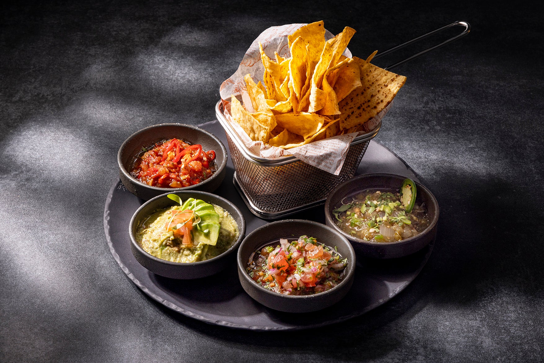 メキシカン・ビアガーデンでご提供するお料理は、在日メキシコ大使館のシェフ、ディエゴ・ロペス・フィリアス氏(Diego Lopez Farias)監修による本格メキシカン。90分間のフリーフローと共にご提供する特製プラッターにはドリンクとの相性を考え抜いた8種類のメニューを盛り込みました。豚肉をオレンジと香り高いスパイスで煮込みほろほろになるまで柔らかく仕上げた「カルニータス」、新鮮な鮪と赤玉ねぎをライム果汁、チリ、パクチーなどで合えた爽やかなシトラス・セビーチェ「ツナ・アグアチレ」、パプリカ、ベーコン、牛肉を組み合わせたメキシコ屋台の定番「アランブレ」などは、ソフトタコスと共にご賞味いただけます。また、サクサク食感がクセになる揚げたてトルティーヤやカリっと揚げたポークスキン「チチャロン」は、「ワカモレ」や各種サルサと合わせてお楽しみください。