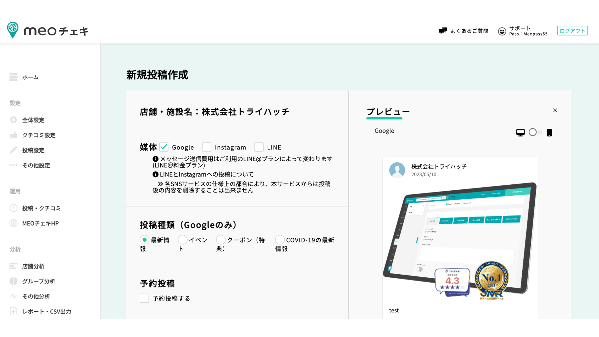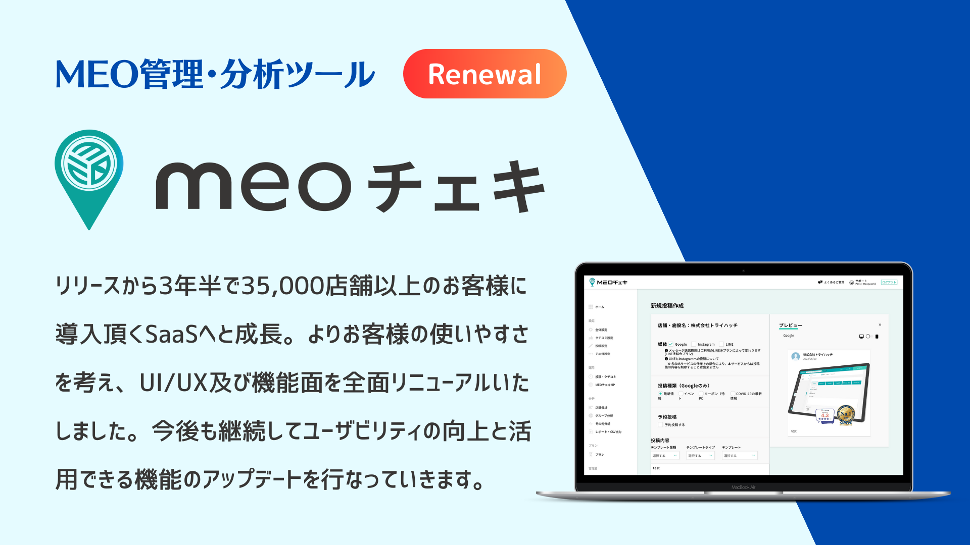 Googleビジネスプロフィール管理・分析ツール「MEOチェキ」全面リニューアルのお知らせ