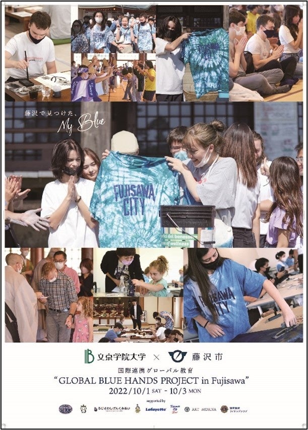 文京学院大学(学長:櫻井隆)は、神奈川県藤沢市と初連携プロジェクトとして実施した国際連携教育プログラム「GLOBAL BLUEHANDS PROJECT」にて、留学生と学生が染めた藍染作品を、10月13日(木)~27日(木)の期間、藤沢市役所本庁舎1Fフロアにて展示することをお知らせします。