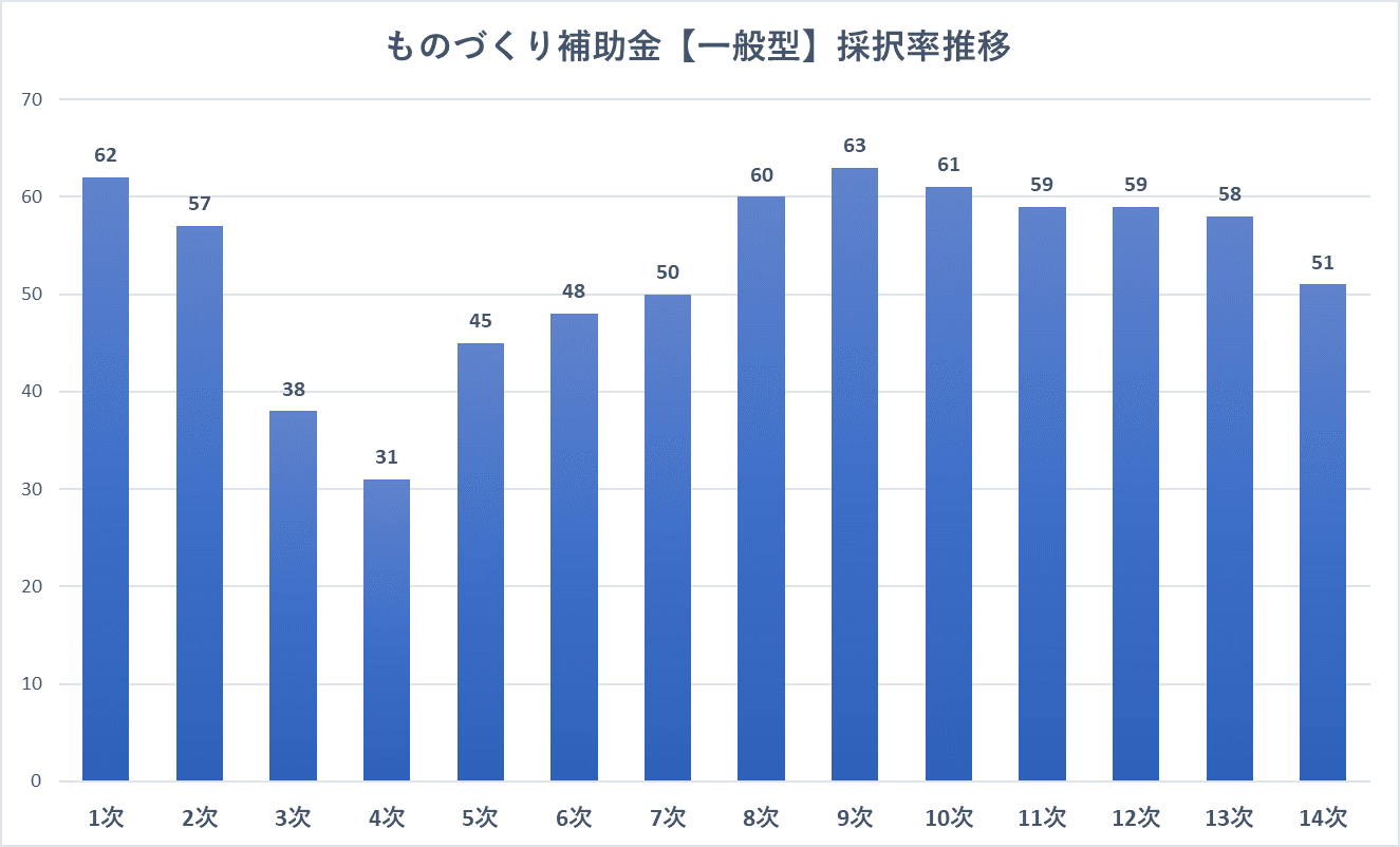 そして今回発表された「第14次ものづくり補助金」の採択率は以下の結果となりました。