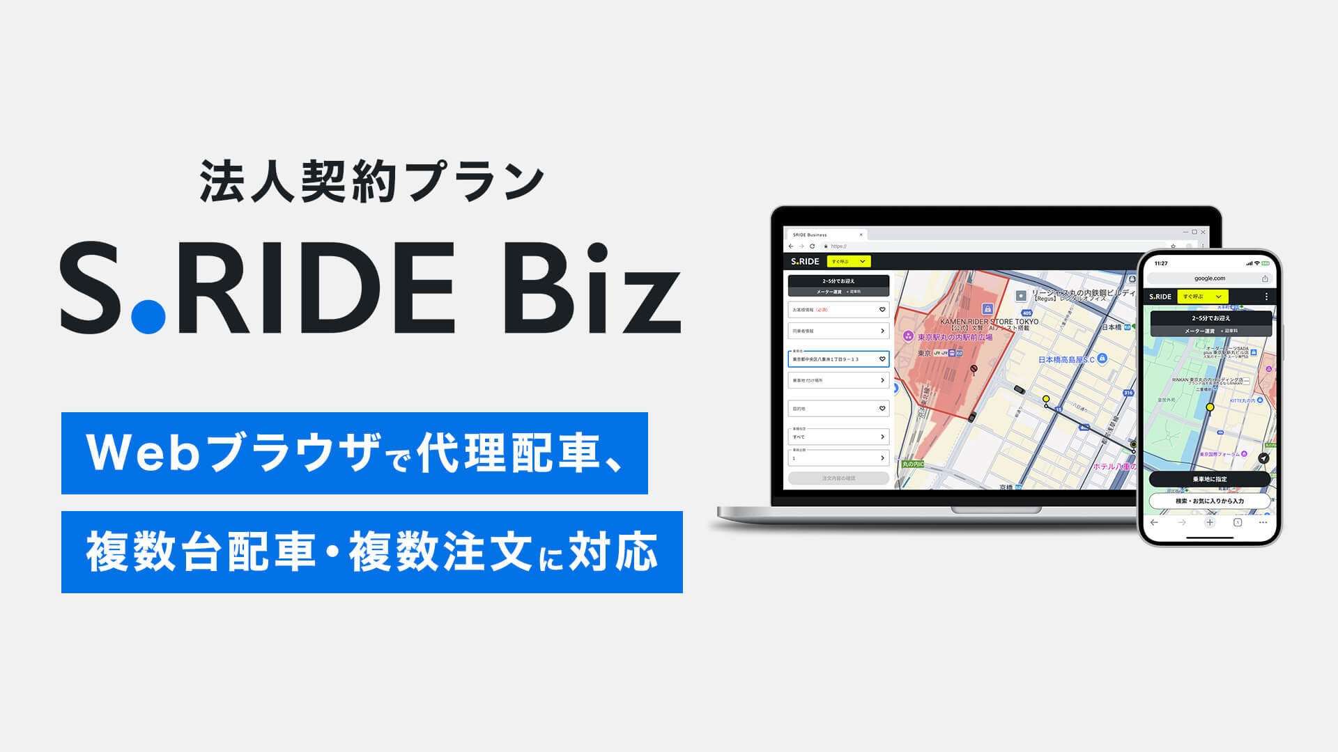 タクシーアプリ「S.RIDE®」、法人契約プラン「S.RIDE Biz」でWeb代理配車に対応 PC、スマートフォンのブラウザから複数台配車、複数注文も可能に