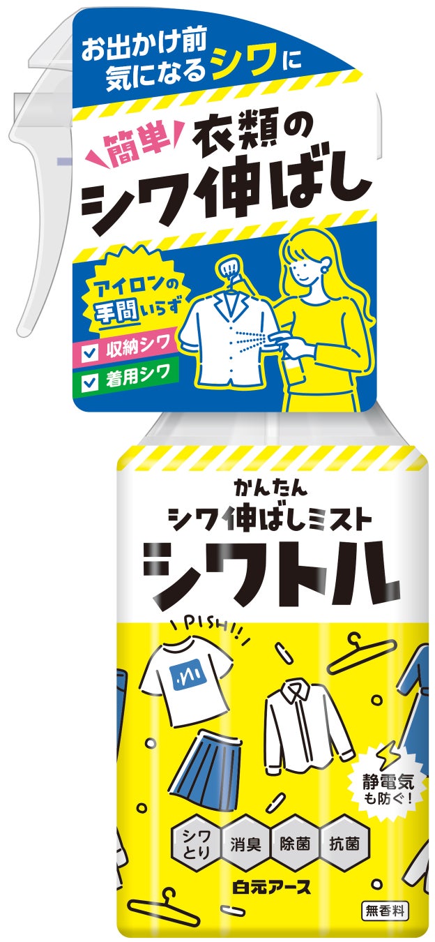 白元アース株式会社(本社:東京都足立区、社長:吉村一人)は、衣類の気になるシワにスプレーして手で伸ばすだけの簡単シワとりミスト『衣類のシワ伸ばしミスト シワトル』を2月3日より新発売いたします。
