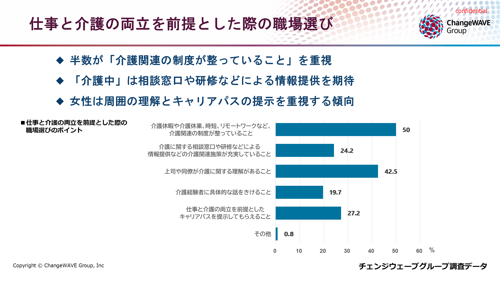 ■両立支援を視野に入れた職場選び「介護制度の整備」がカギ