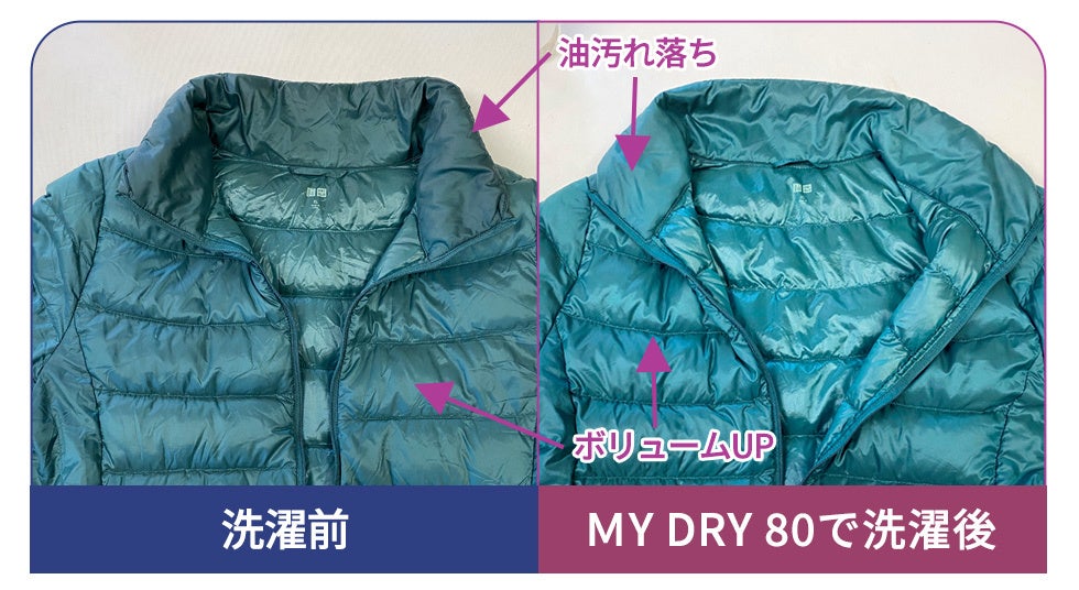 セーターやダウンコートなどイメージとしてはお家で洗えないと思われる衣類もMYDRY80で洗って気持ちよく衣替えを迎えてください。