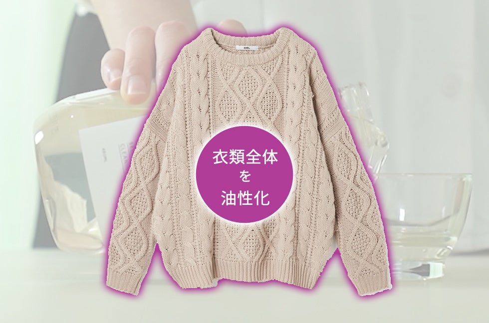 油性界面活性剤を配合することで繊維全体を油性化して衣類をダメージから防ぎます。