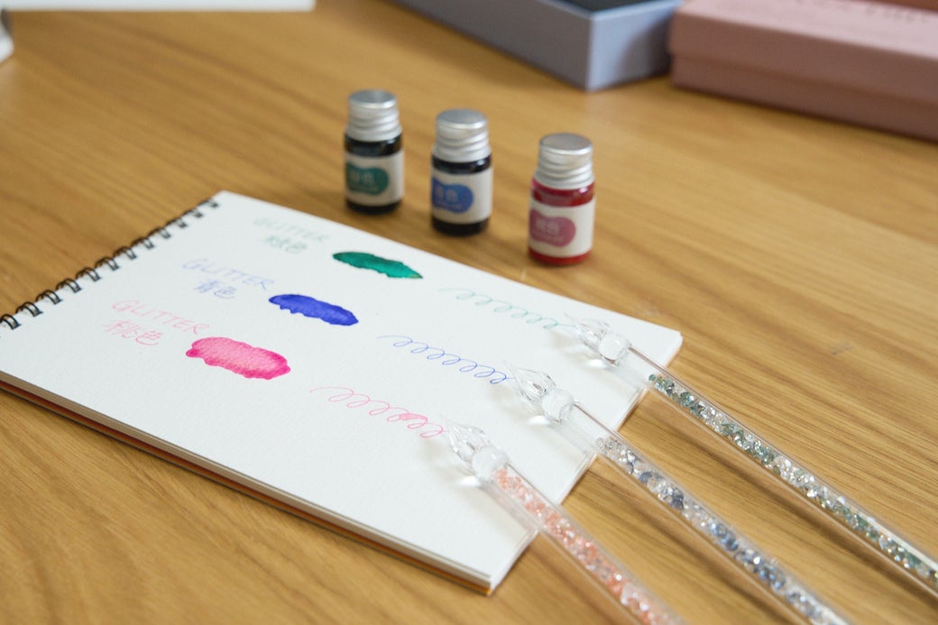 ガラスペンは、ガラス製のペン先をインクに浸して筆記するツールで、デザインの美しさや書き味、多彩なインクが魅力となり、「インク沼」という言葉が誕生したほど、文房具好きの女性を中心に人気を集めている注目の筆記具です。