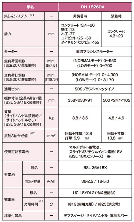 オートストップ機能やリアクティブフォースコントロール機能で快適な作業をサポート 18Vコードレスロータリハンマドリル DH 1826DAを発売 ~2023年2月8日(水)より全国で順次発売開始~