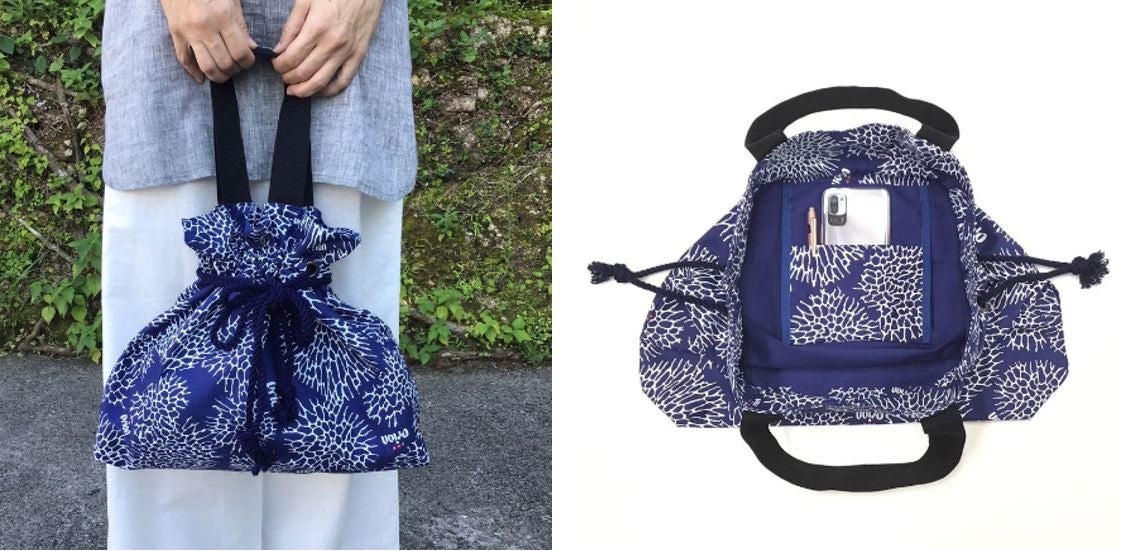 今回は創業 50 有余年の首里琉染による「サンゴ染め」をモチーフにした世界で一品 (ひとしな)しかない模様を使ったオリジナルの生地から、男女関係なく沖縄を感じながらお使い頂けるワンショルダーエプロン、前掛け、巾着の3アイテムをご用意いたしました。