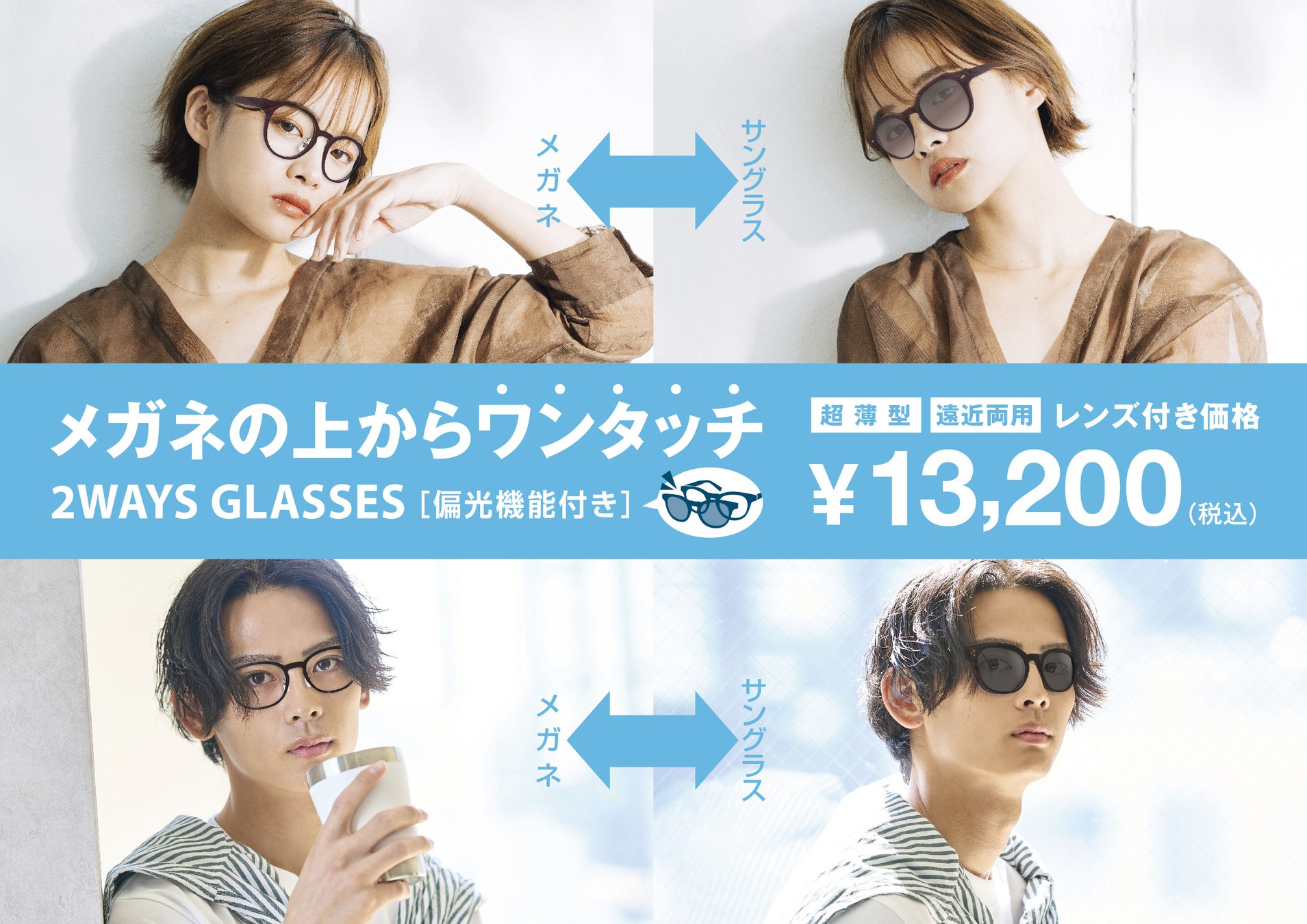これぞ二刀流⁉「メガネとサングラス」がワンタッチで早変わり!これ1本で超便利なメガネが愛眼から登場!