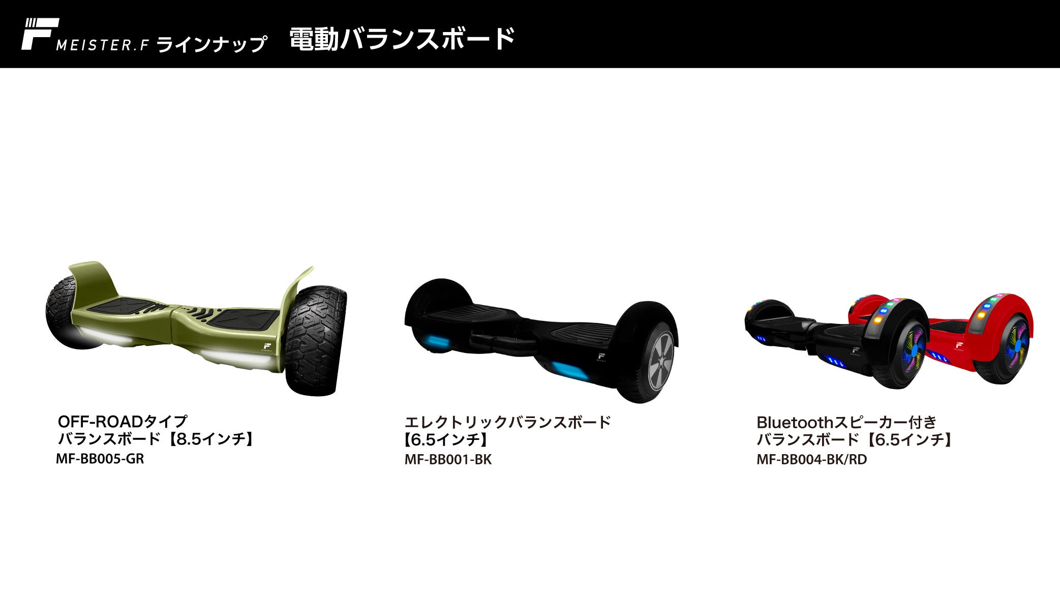 ご試乗頂いた電動キックボードと電動バランスボードは、店内のMEISTER.Fコーナーにてご購⼊いただけます。