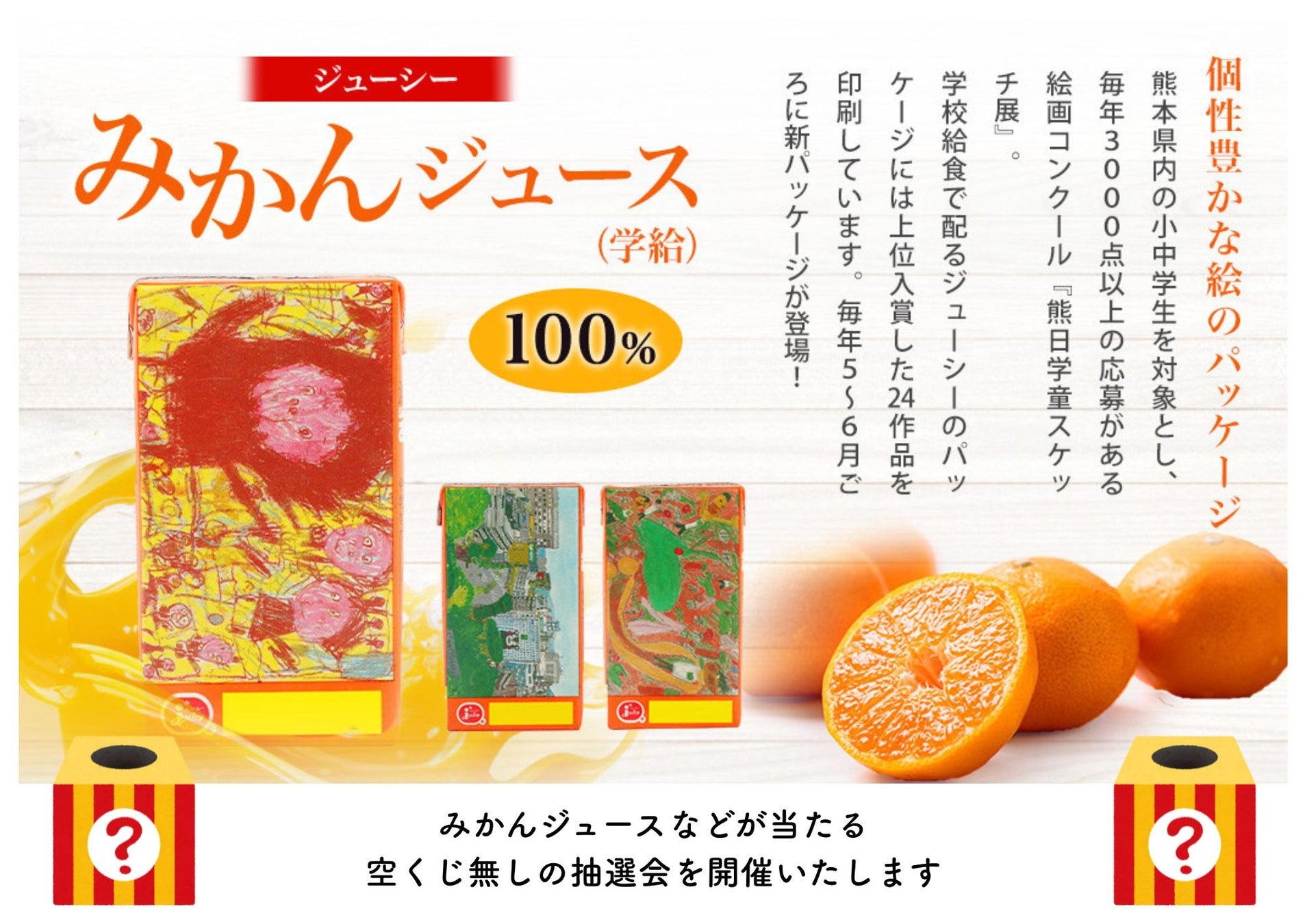熊本市の学校給食でも長年親しまれ、ふるさと納税返礼品としても人気を誇るみかんジュースのマスコットキャラクターが登場し、来場者と交流いたします。