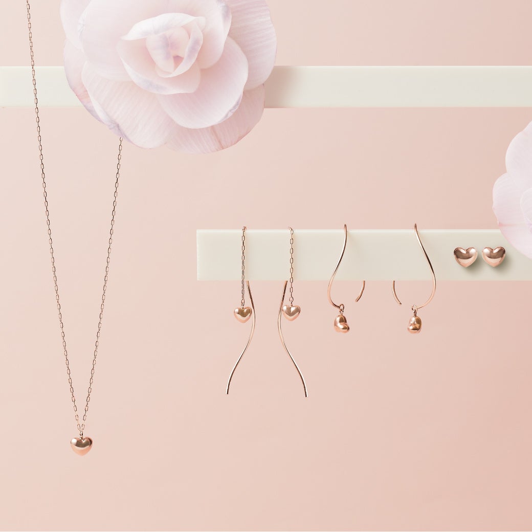 もなかのようなぷっくりとしたハートフォルムが愛らしい、シンプル派さんも使いやすいハートジュエリーです。