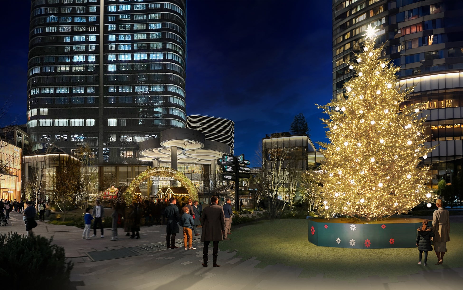 クリスマスの祝祭感に包まれる麻布台ヒルズで、心躍るホリデーシーズンのひとときをお過ごしください。
