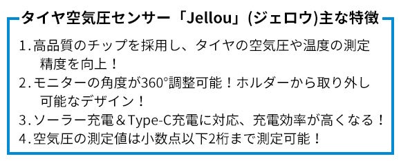 そこで登場したのが、タイヤの状態を監視する空気圧センサー「Jellou」です。