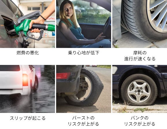タイヤの性能を最大限発揮させるためには定期的に空気圧の点検が必要です。タイヤの空気圧が低下すると、様々な悪影響を引き起こす可能性があります。