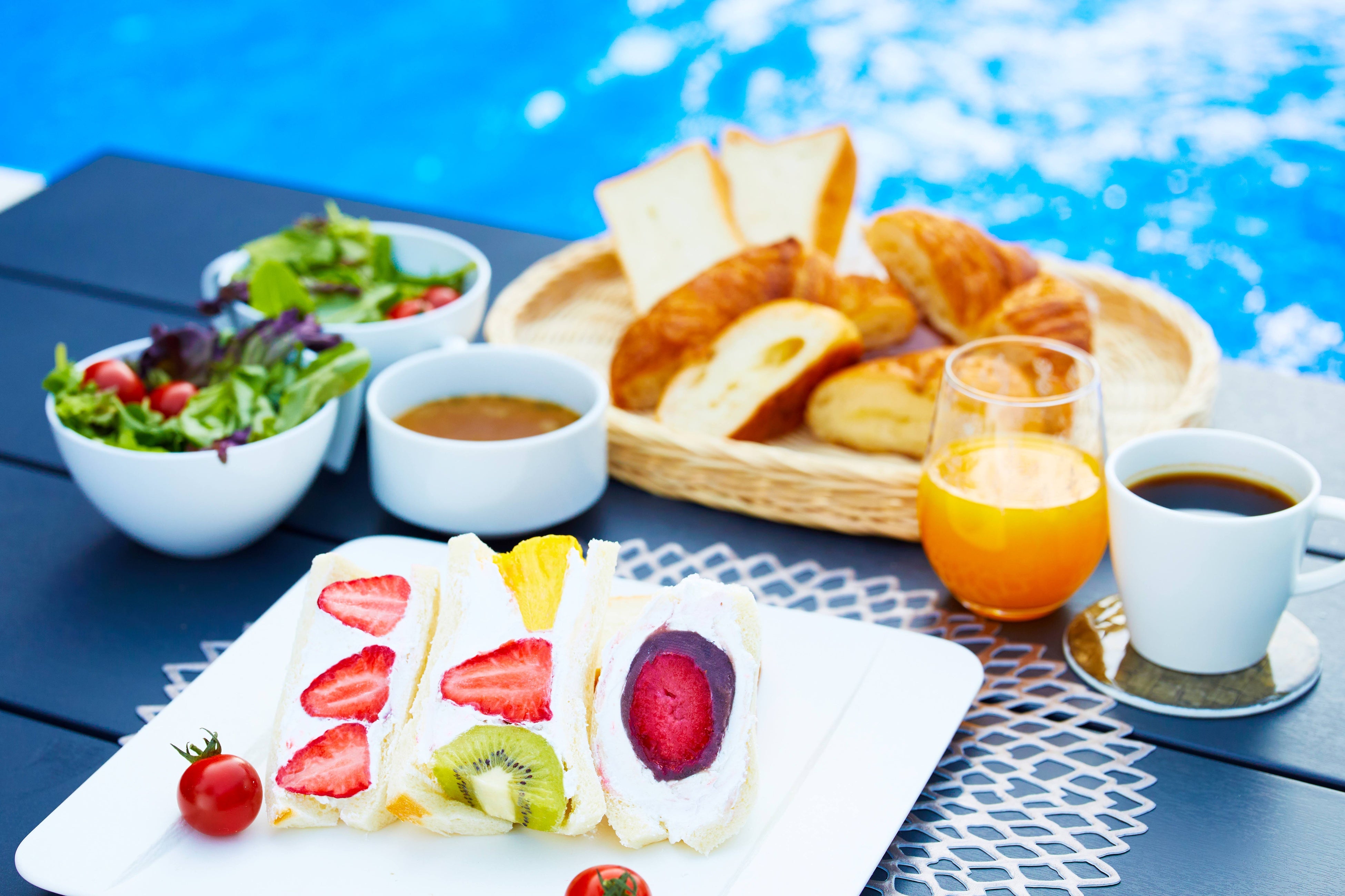 モーニングには、地元の”人気フルーツサンド”とコーヒー