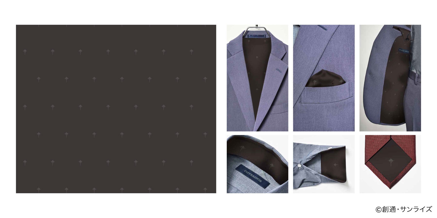 2月のコラボレーション開始時に事前告知しておりましたとおり、3月27日(金)より、スーツの胴裏地・袖裏地、シャツの襟裏・カフス裏地、ネクタイの大剣裏地としてお選びいただけるデザインに、反地球連邦政府運動「マフティー」組織のロゴマーク総柄が追加となります。ガンダムの世界観をさりげなく日常に取り入れられるこだわりの仕様となっています。
