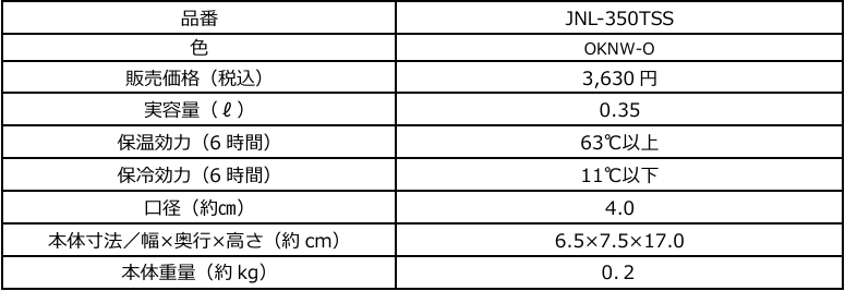 『サーモス 真空断熱ケータイマグ(JNL-350TSS OKNW-O)』 仕様一覧