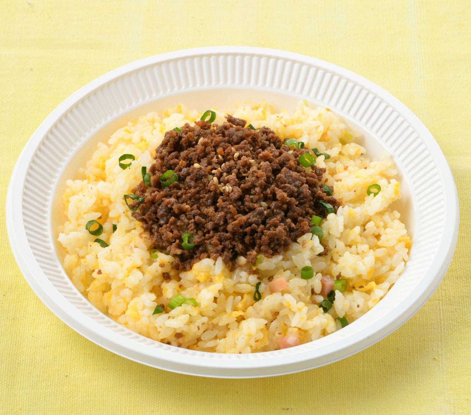 当社の駅弁大会ランキングでも常に上位にランクインしている山形県米沢駅の人気駅弁「牛肉どまん中」の牛そぼろを、上海料理店「四五六菜館厨房」自慢のチャーハンの上に盛りつけました。パラパラとした食感の香ばしいチャーハンに、「新杵屋」秘伝のタレで甘辛く煮つけしっとりとした牛そぼろが相性抜群の一品です。