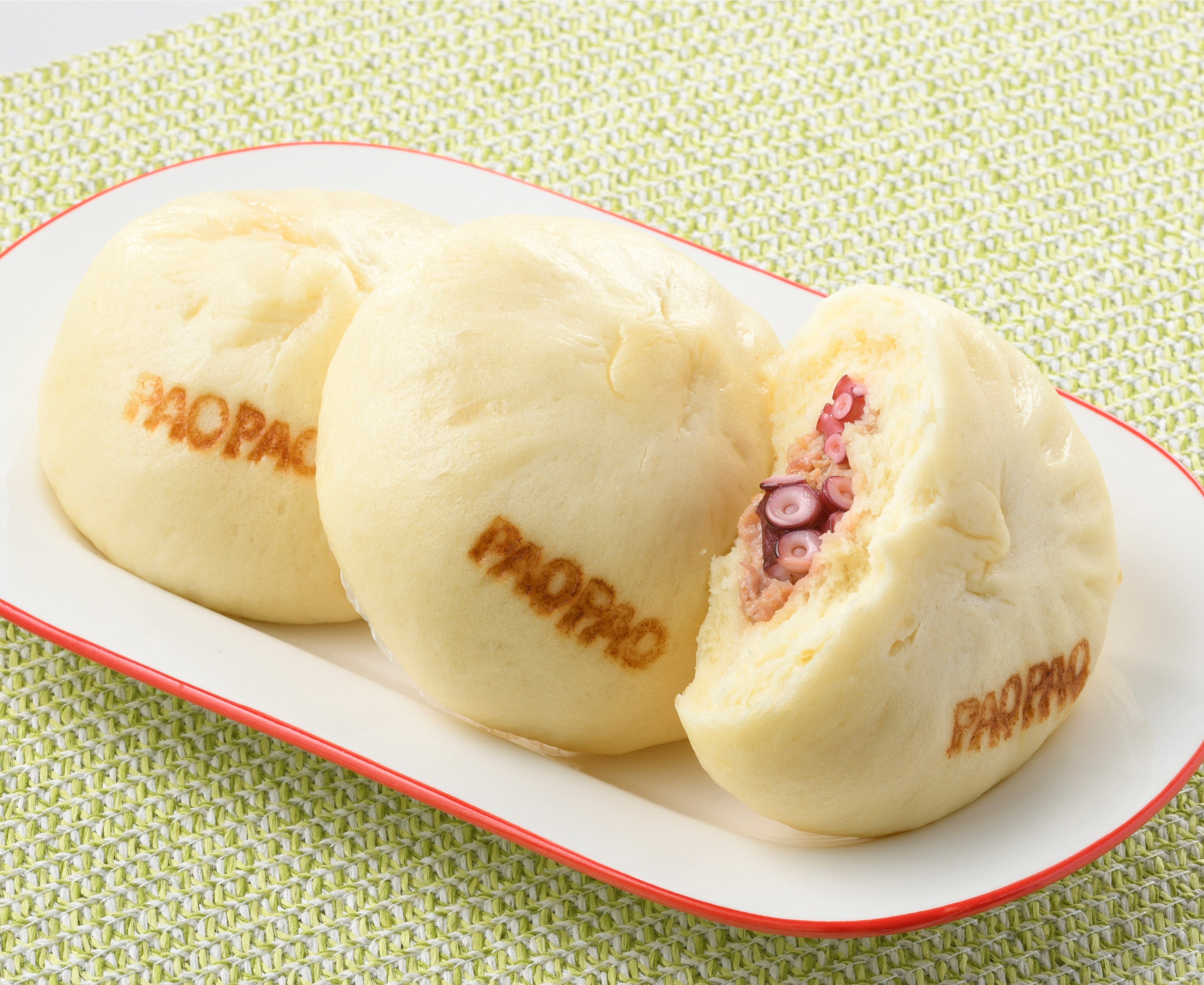 毎日厨房で手包みする点心が人気の「PAOPAO」と「淡路屋」が手掛ける兵庫県西明石駅の人気駅弁「ひっぱりだこ飯」がコラボレーション。「ひっぱりだこ飯」に入っているタコのうま煮を、鰹節がほのかに香るあんとあわせてPAOPAO特製のもちもちとした弾力あるまんじゅう生地で包みました。