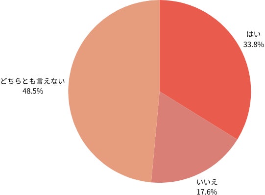 アコムを周囲におすすめしたいかについては、おすすめしたい人が33.8%、おすすめしたくない人が17.6%で、「どちらとも言えない」と回答した人が48.5%だった。
