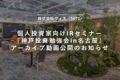 ワークデザインを手掛ける株式会社ヴィス(本社:東京都港区、代表取締役:金谷智浩、以下ヴィス)は、2024年11月30日(土)に開催された、神戸投資勉強会主催個人投資家向けIRセミナーin名古屋にて、当社代表取締役社長 金谷 智浩が登壇し、その講演内容がアーカイブ動画として公開されましたので、下記にお知らせいたします。