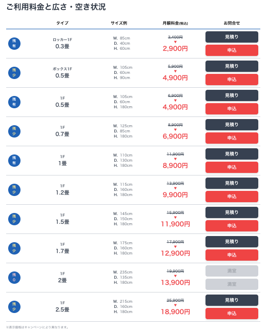 荷物以上に大きな部屋を借りてしまうことや、狭すぎて荷物が入らなかったなんていうトラブルを回避できます。