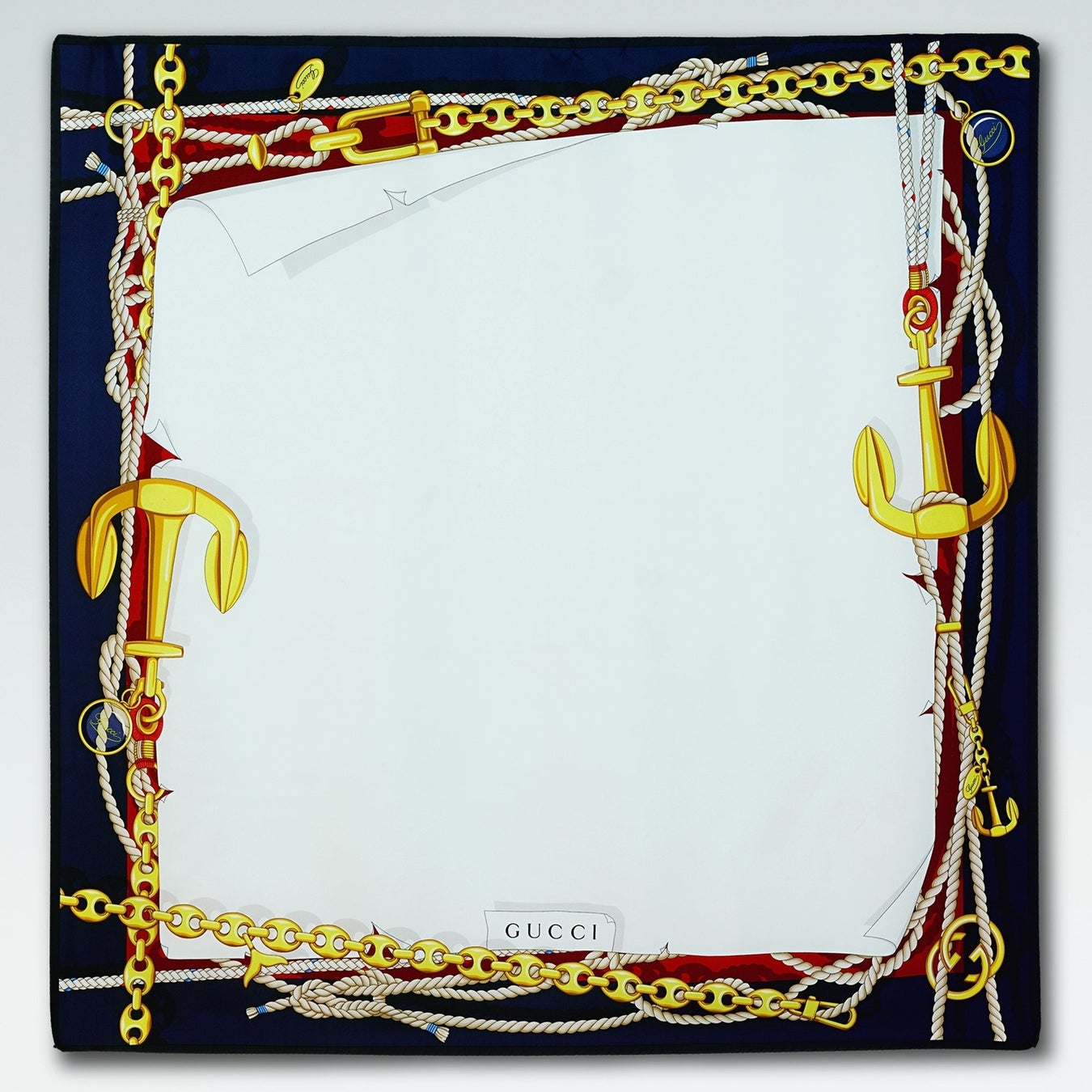 1958年、グッチはシルク製品の未来に向けて大きな一歩を踏み出します。イタリアのシルク名産の地として知られるコモ発祥の名門シルクメーカーと提携し、初のシルクスカーフ「Tolda di Nave」を発表しました。航海をテーマとしたこの素晴らしいスカーフは、グッチのシルクの世界における革新の幕開けを飾るものとなりました。