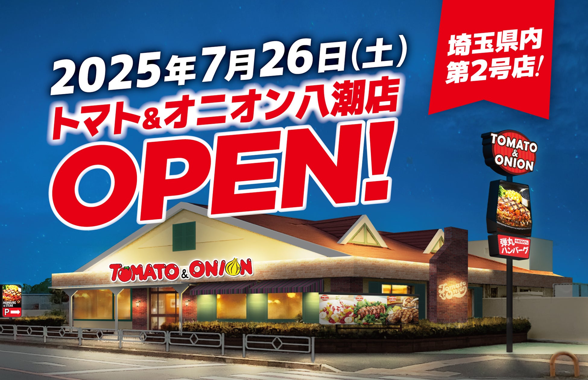 株式会社トマトアンドアソシエイツ(本社:兵庫県西宮市、代表取締役社長:笹村 啓介)が運営する、アメリカンダイニンレストラン「トマト&オニオン」は、2025年7月26日(土)に埼玉県で二店舗目となる「トマト&オニオン 八潮店」をオープンいたします。