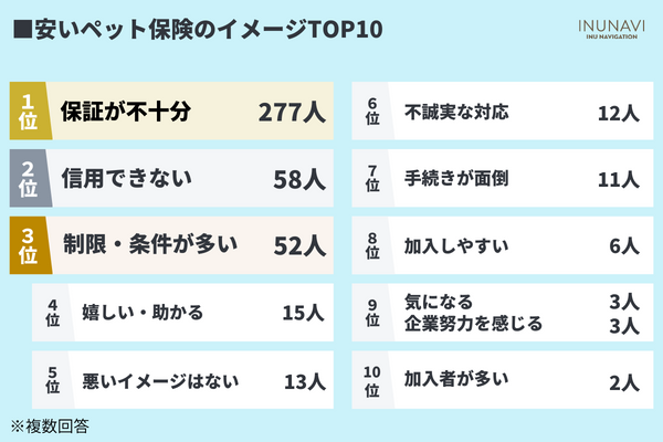 安いペット保険のイメージは「補償が不十分」「信用できない」
