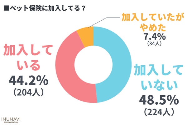 ペット保険に「加入している」と回答した飼い主さんは44.2%でした。