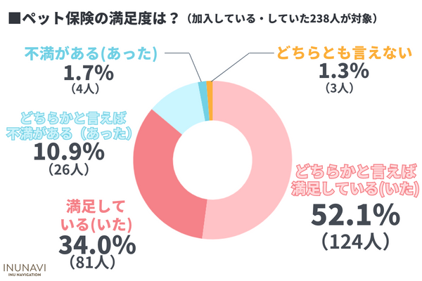次いで、「満足している(いた)」と回答した飼い主さん34.0%が続くことから、ペット保険に加入している人の満足度は高いようです。