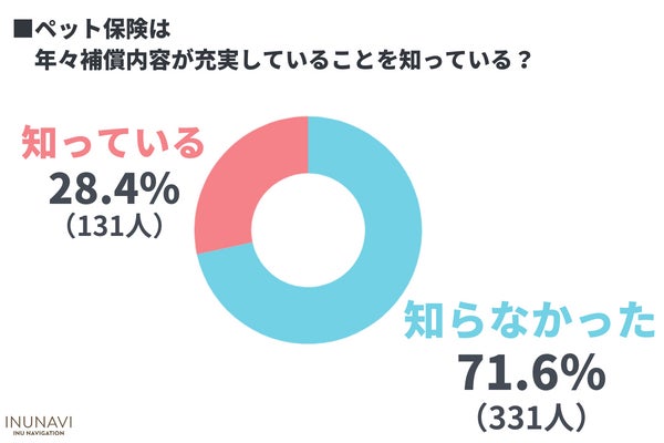 ペット保険は年々補償内容が充実していることを「知らなかった」と回答した飼い主さんは71.6%でした。