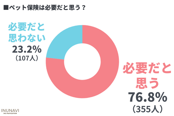ペット保険を「必要だと思う」と回答した飼い主さんは76.8%でした。