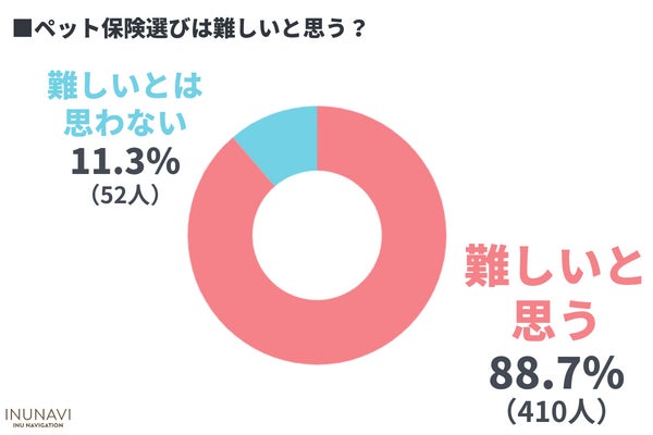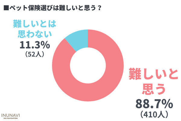 ペット保険選びを「難しいと思う」と回答した飼い主さんは88.7%と多い結果になりました。