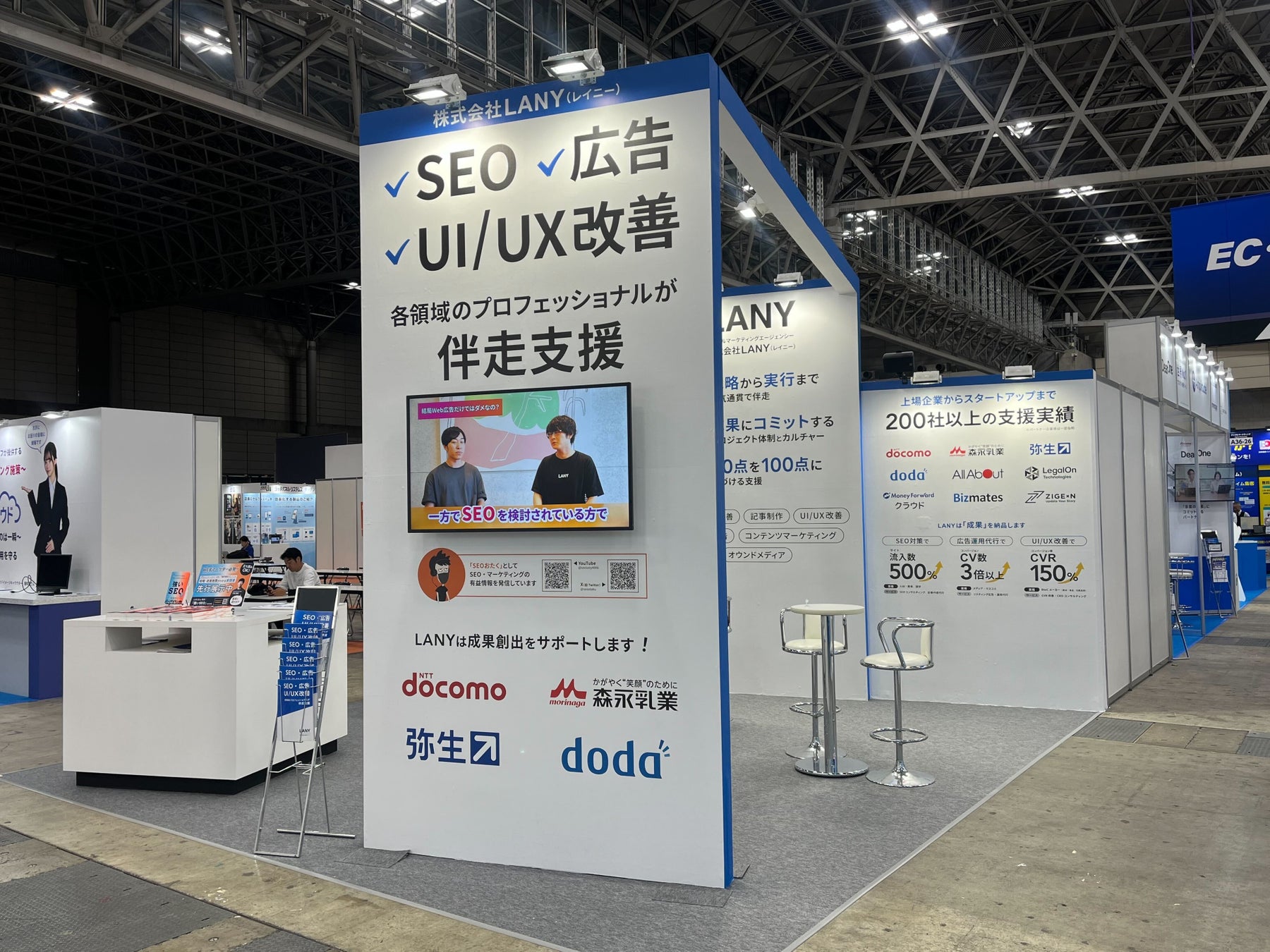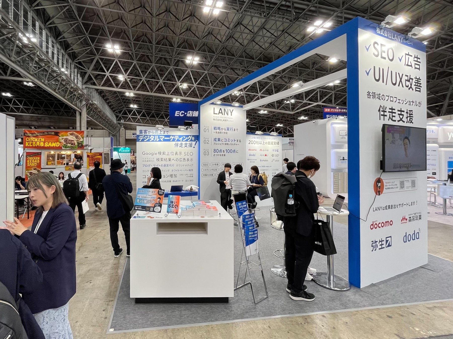 当日は多くのご来場者にLANYに関心をお持ちいただき、ブースでは約200名の方にサービスのご説明をしたり、実際に簡易的なサイト分析をさせていただいたりしました。