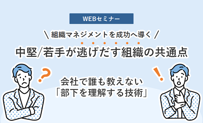 【Web セミナー】2 月 9 日(木)開催中堅/若手が逃げだす組織の共通点から学ぶ組織作りのメソッド